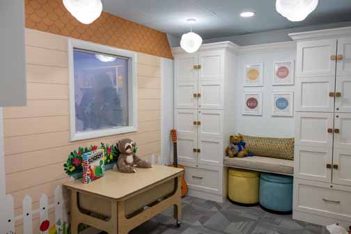 The refurbished playroom is specially designed for use by children who have been subjected to abuse. Students in the Interior Design program at Palm Beach State College produced the playroom concept under the guidance of Professor Nancy Albert. The design features enhancements from the flooring and walls to furniture and lighting, including a one-way observation window. Funding for this project was provided from kind donors raising the paddle at the 24th Annual Old Bags Luncheon in the spring of 2023.